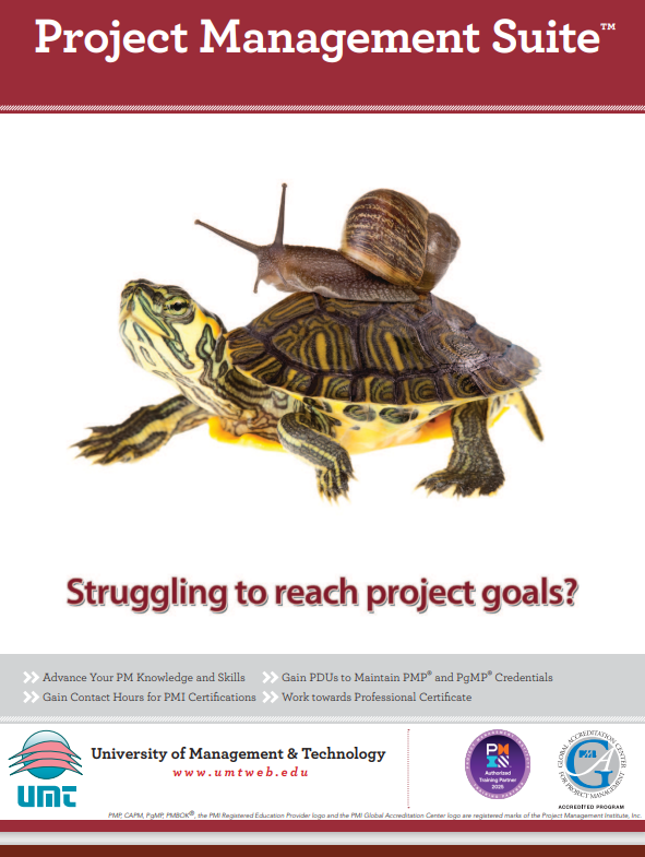 The Project Management Suite™ consists of self-paced courses that award 15, 30 or more PDUs each. The course number for PM Suite courses starts with UMT. Want even more PDUs? Choose from one of the self-paced academic courses that award PDUs (45 PDUs each). The course number for Academic courses starts with either MGT or CST.